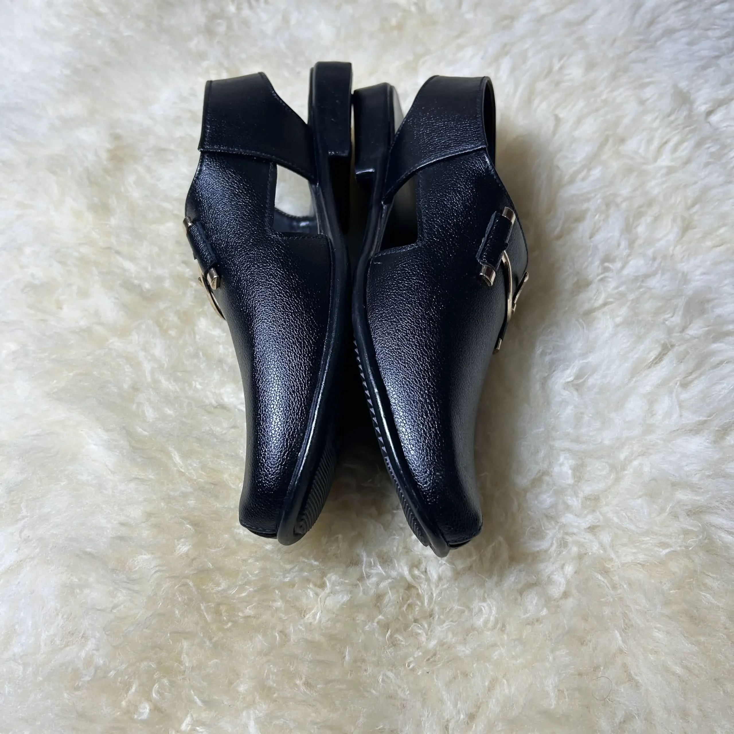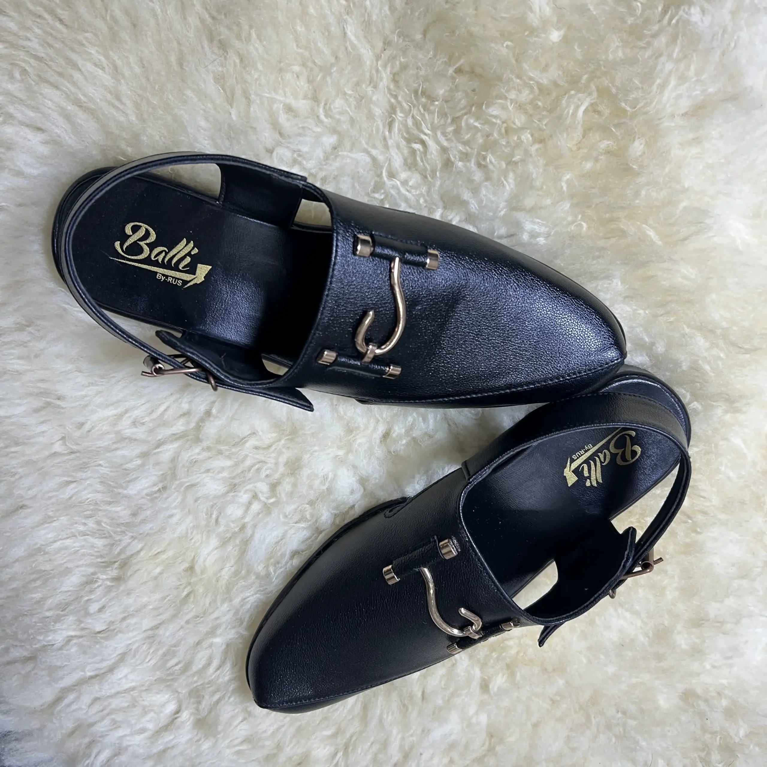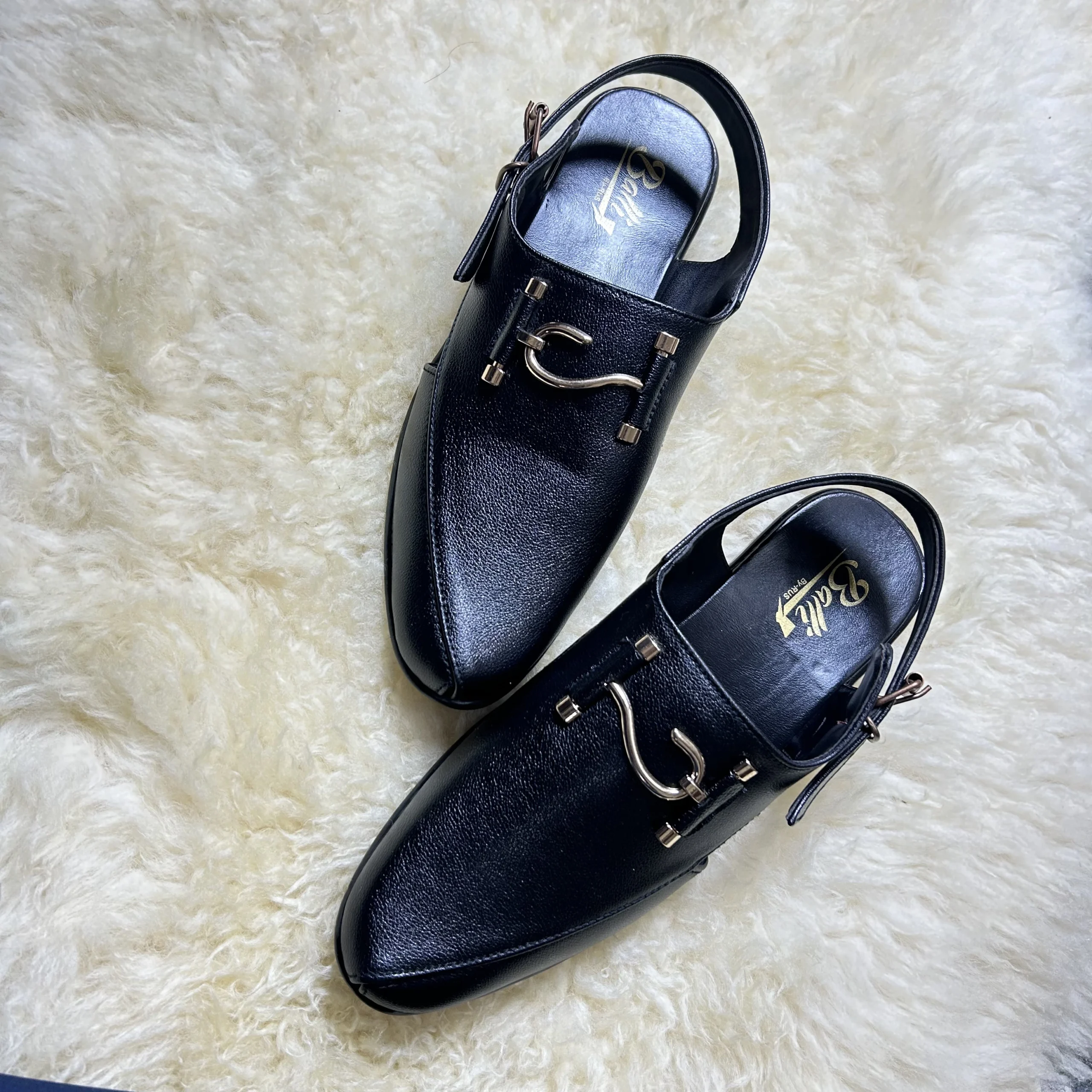 Black leather with silver hardware and a back strap — the Huzoor commands attention with every step. A Peshawari silhouette refined for the modern court.